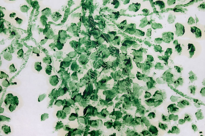 A série de desenhos feitos com bastão de óleo vieram da observação do entorno de onde moro. Uma observação que encontrava nas plantas um eco das histórias ouvidas em criança, como se elas me permitissem me aproximar de um lugar seguro.